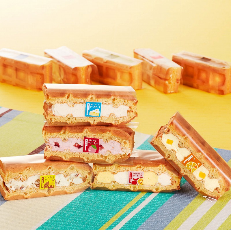 色とりどりのワッフル生地を使い、断面の美しさにもこだわったスイーツです。