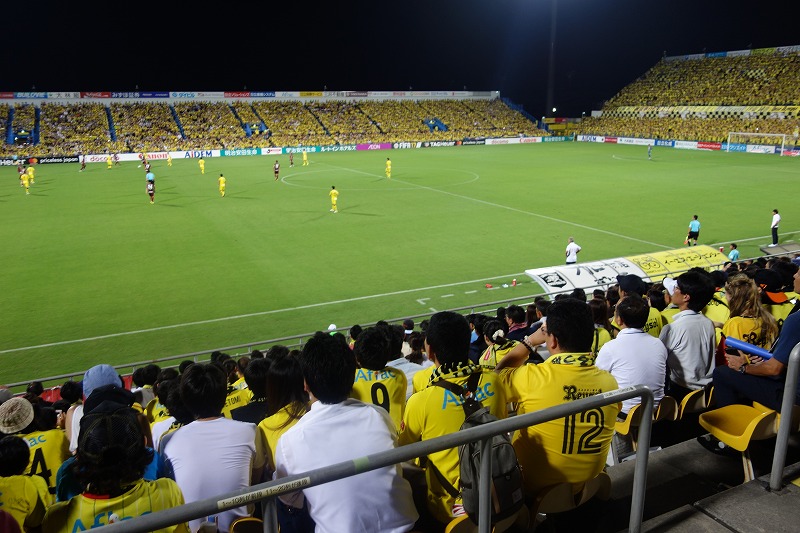 日立柏サッカー場はスタンドとピッチが非常に近く、