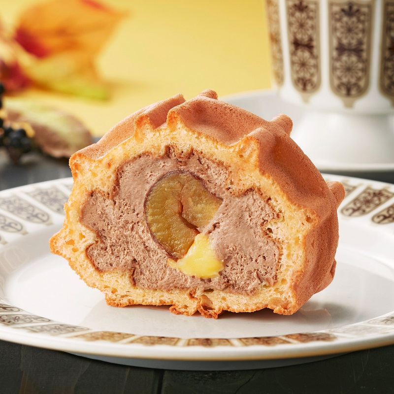 渋皮つきの栗とマロンカスタードにチョコレートクリームを合わせて、ふっくら焼き上げたワッフル生地で包み込みました。