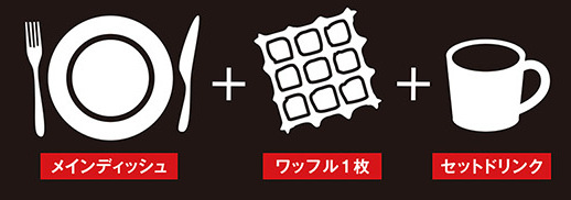 ふっくら焼き上げた自慢のワッフルとメインディッシュ、ドリンクをセットにしました。メインディッシュは、グランタン2種、ドリア、サラダからお選びいただけます。