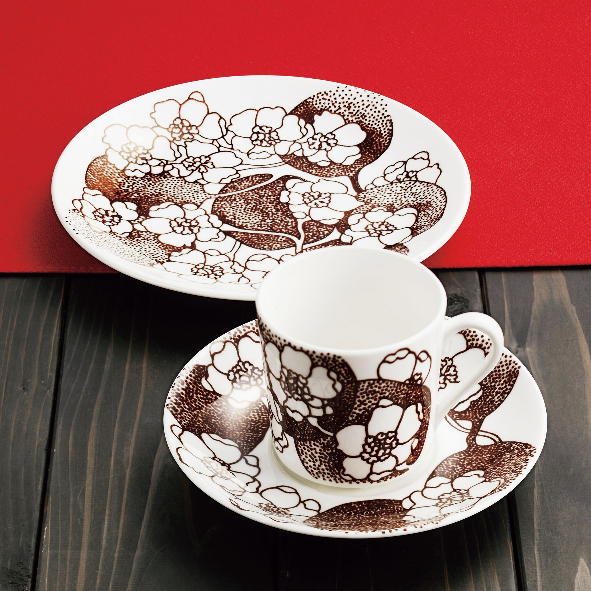 大柄の花と果実が食器の全面に描かれたEmma(エンマ)シリーズ。