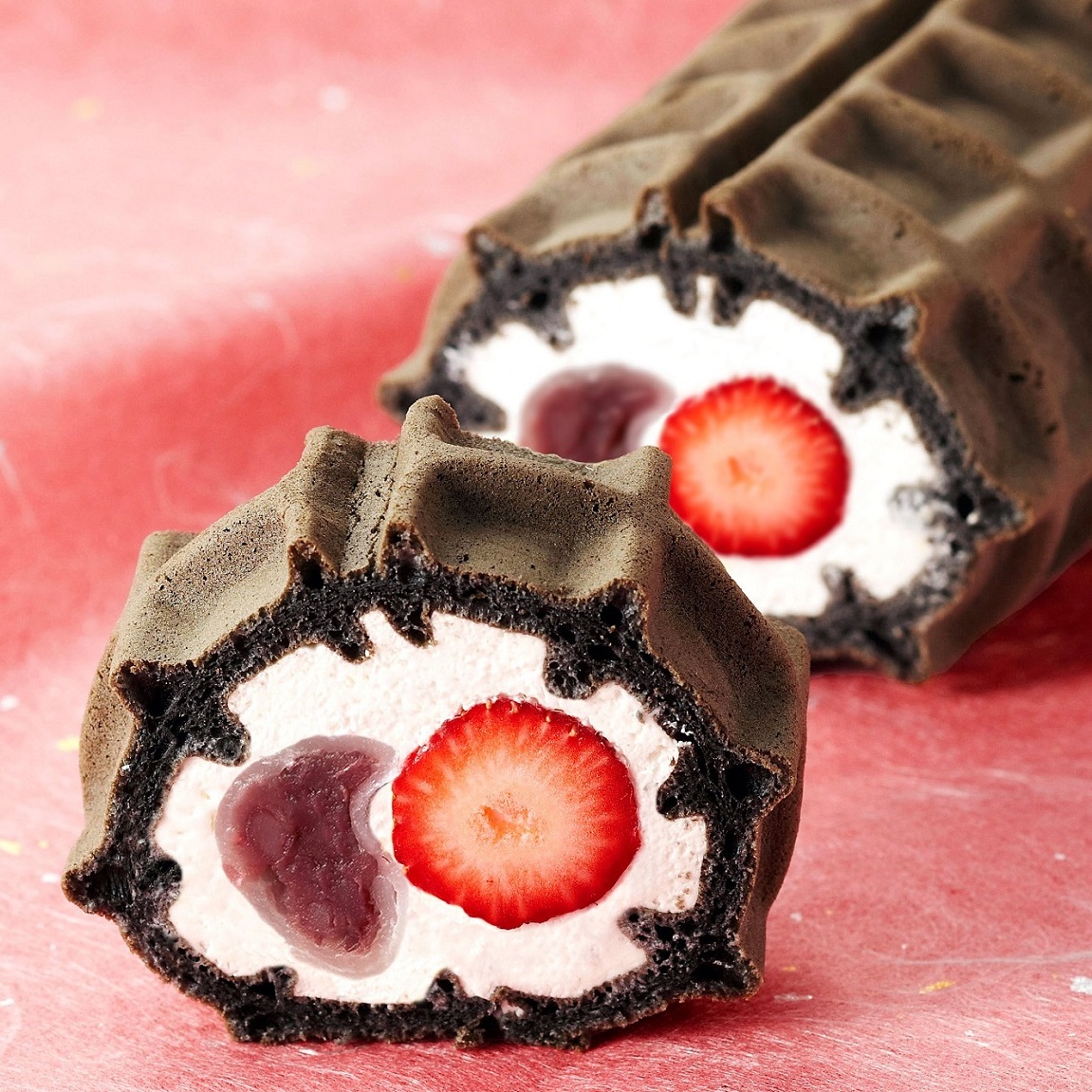 もちっとした求肥と上品な甘さの粒あん、まるごとのあまおうを大胆にロールしました。