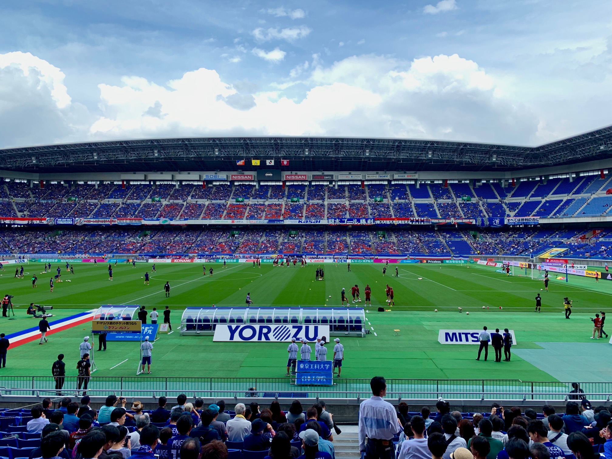試合会場の日産スタジアムは多目的競技場で日本最大規模の72,327席・・・デカイ!