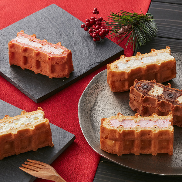 1年のはじまりを彩る色とりどりのワッフル。いちごや栗などバリエーション豊かな今だけの味わいを楽しんで。