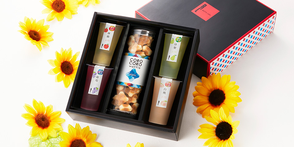 国産果肉やピュレを使用した、ひんやりプルプルの「フルーツゼリー」と、サクサク食感が楽しい「コロコロワッフル」を合わせた、彩りも鮮やかな夏季限定のギフトセットです。